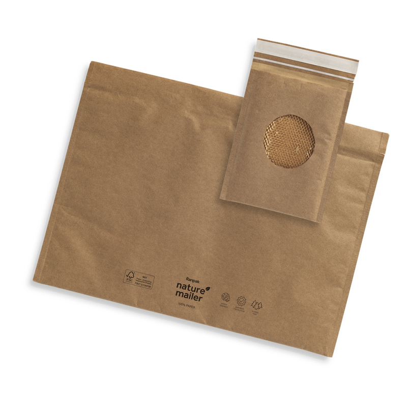 Die NatureMailer Versandtaschen von Ranpak bieten eine umweltfreundliche und effiziente Lösung für den sicheren Versand verschiedenster Produkte. Hergestellt aus vollständig recycelbarem Papier mit einer innovativen Honigwabenstruktur, vereinen sie Nachhaltigkeit mit hervorragendem Produktschutz.